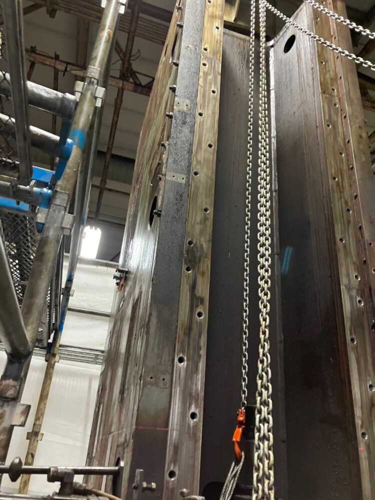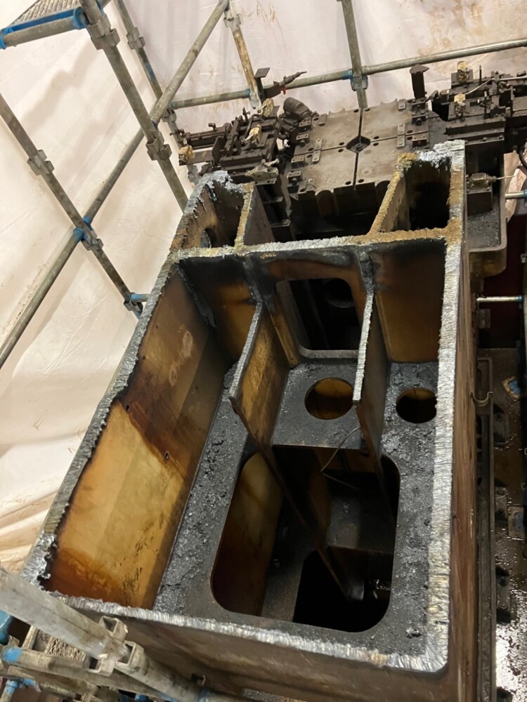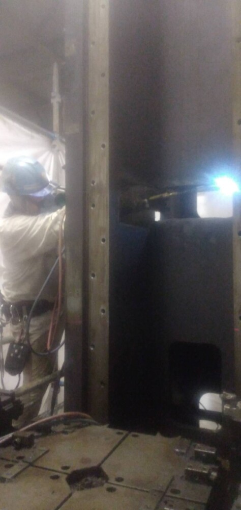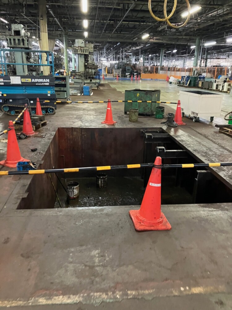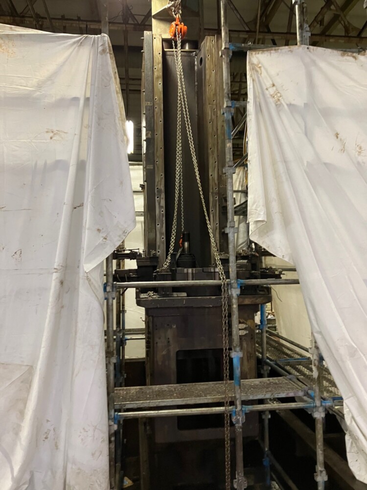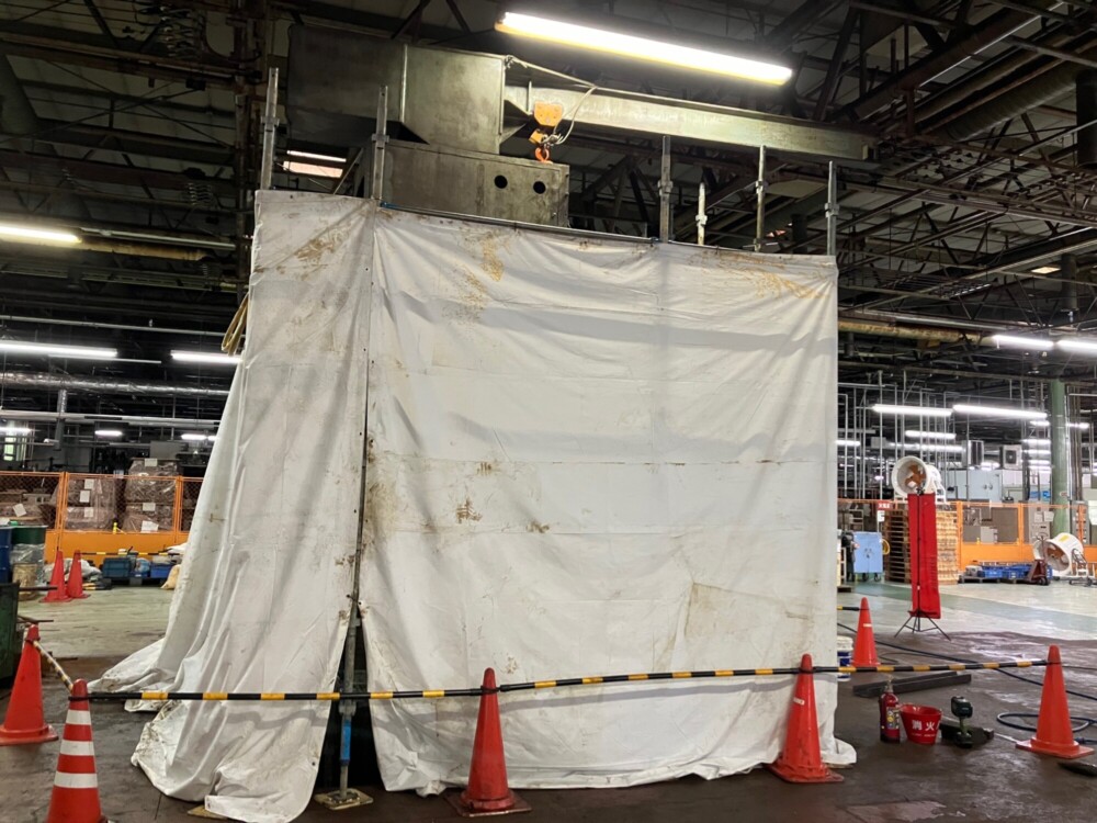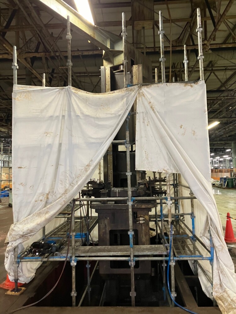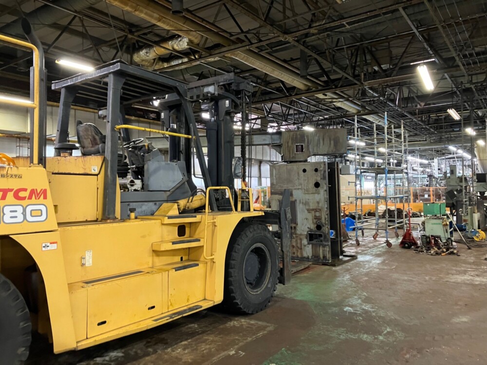 昨年も、小さい設備は100㎏から、大きい設備で20トンを超える様々な重量機器設備の移設や撤去、据え付け工事に従事させて頂きました。その多くの工事で、某自動車メーカーの部品加工工場に出入りさせて頂く事が多く、バッチ式ガス浸炭炉、油圧プレス加工機、コンベアーや搬送機、高精度マシニングセンタ、CNC旋盤、リークテスター、ブローチ盤、多軸ボール盤などの研削盤、洗浄機、成型機、金型ダイカストマシン、押し出しプレス、トランスフォーマシン、低圧及び高圧鋳造機、等々ここ数年で色々な経験を元請会社様のご指導の下、させていただく事が出来ました。                        その中で今回は、ブローチ盤の撤去工事の模様をご紹介いたします。この装置は背が高く、重量もかなりあり、まず上部の外旋盤を外し、チェーンブロックで降ろし、18トンのリフトを用いて、爪穴を空け、2分割にガス切断し、解体を進めました。切断箇所は、治具が重なる所は70㎜近くあり厚く少しの切り残しもリフトで上げるため許されません。切断が終了し、リフトアップしスパっと切断箇所が離れた時の達成感は筆に尽くし難いものでした。このような時に瞬時に思い浮かぶ顔が、当時の私に昭和スタイルで厳しく厳しくご指導をいただきました師匠達の怖い顔です。私の大切な財産です。